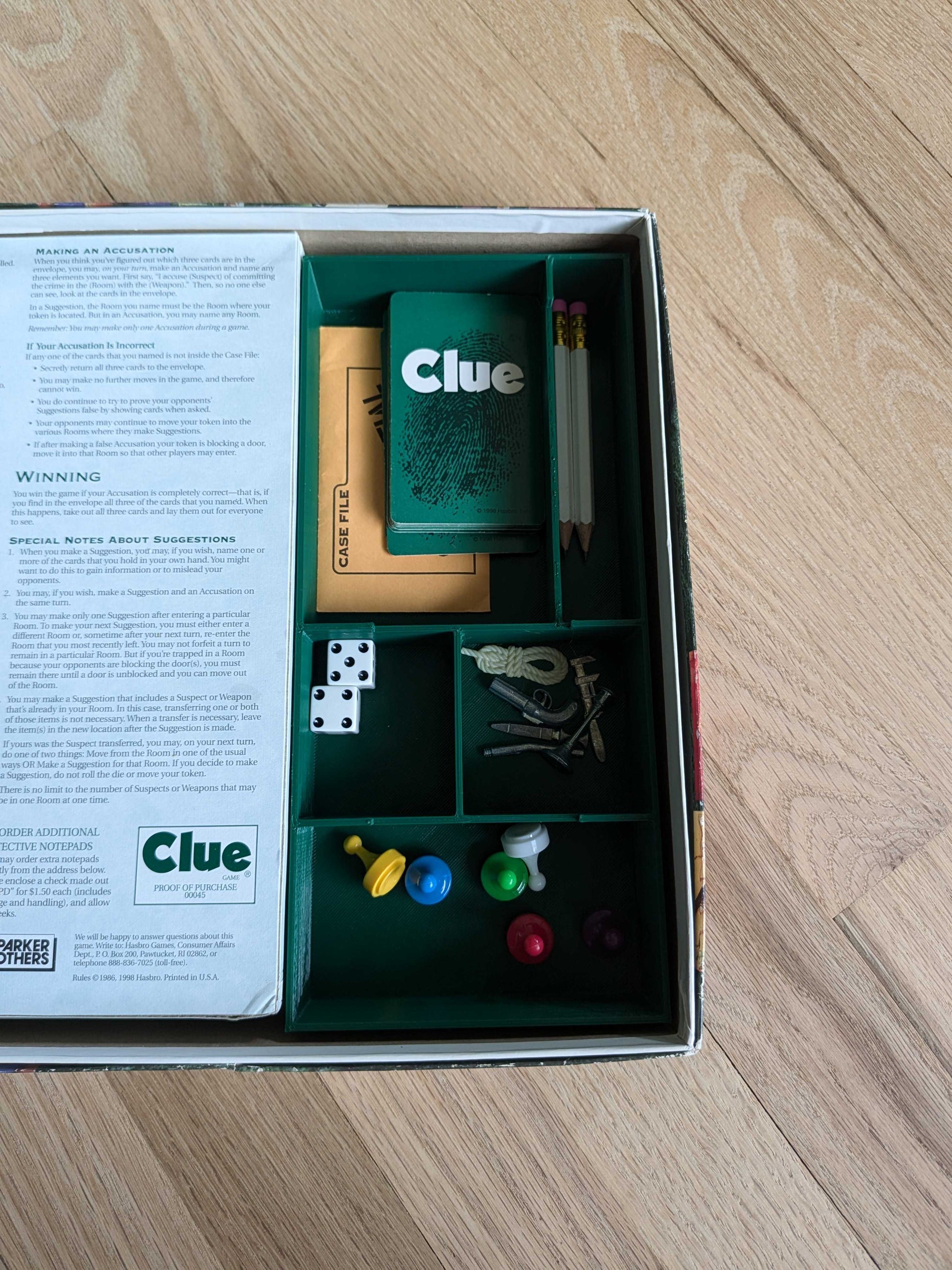 1998 Clue Board Game - Improved, Custom, Game Piece Organizer