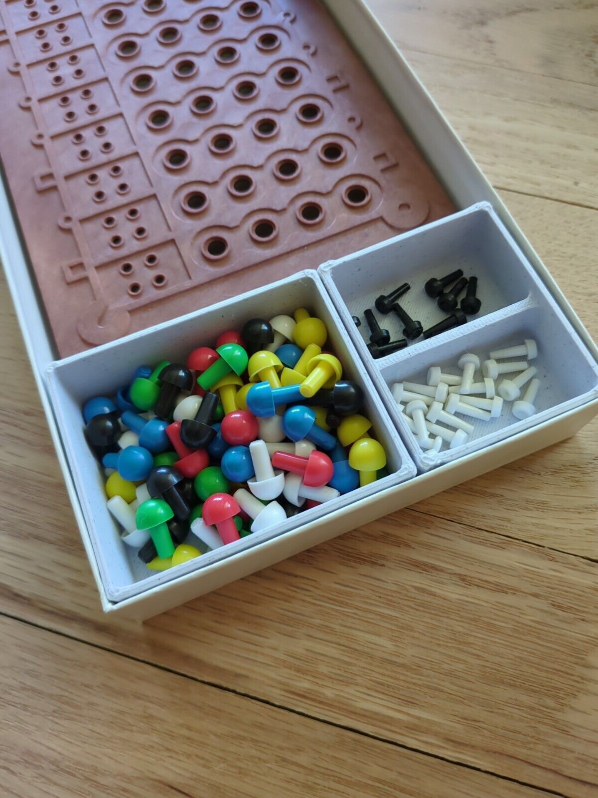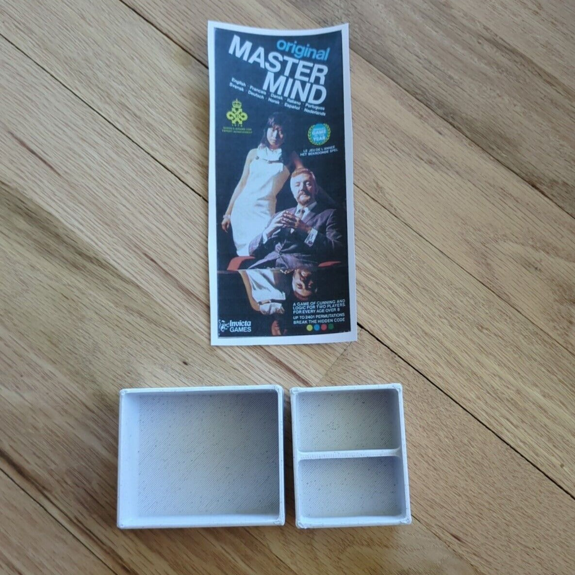Marbled white. Replace the original cardboard box from your 1972 Mastermind with two segmented boxes for organizing pieces for both players. Great for completing or upgrading sets with missing or degraded parts.