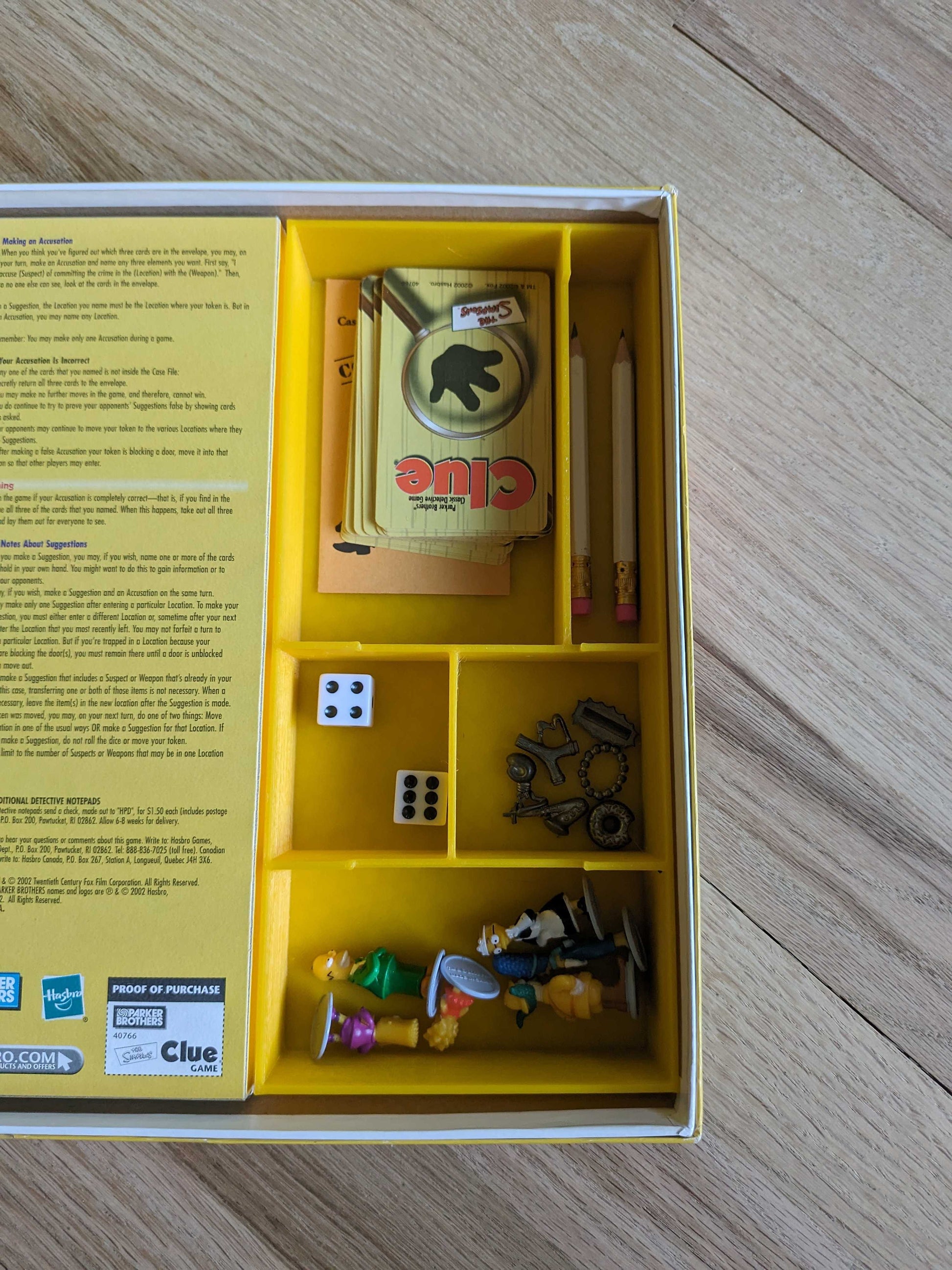 Simpsons Clue Board Game - Improved, Custom, Game Piece Organizer