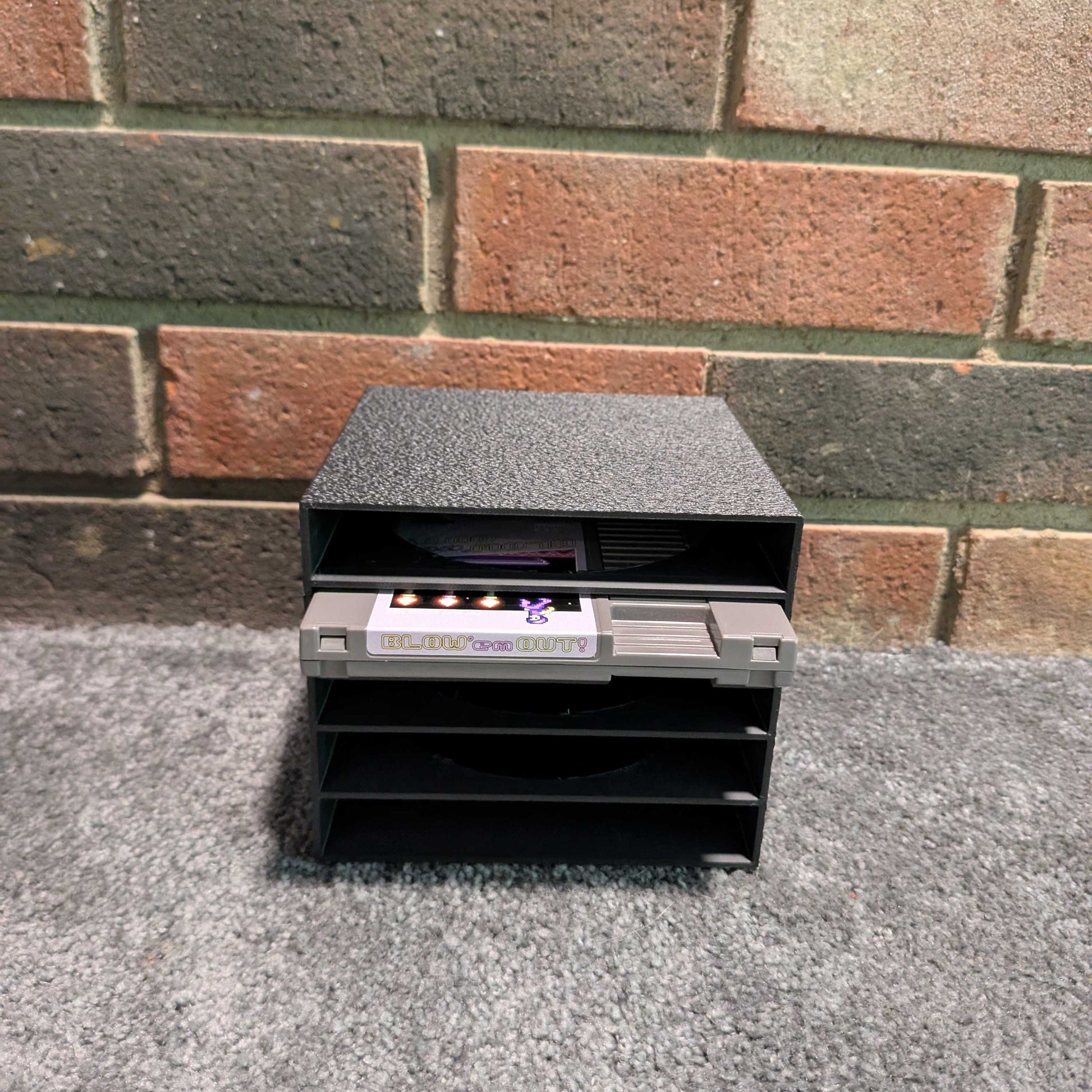 Keep your favorite games within reach and proudly on display with this sleek, wall-mountable video game organizer. Designed to hold 5 or 10 cartridges, this compact rack is perfect for retro and modern game collectors alike. Whether you're tidying up a gaming corner or creating a showcase, this organizer adds both function and flair to your setup.